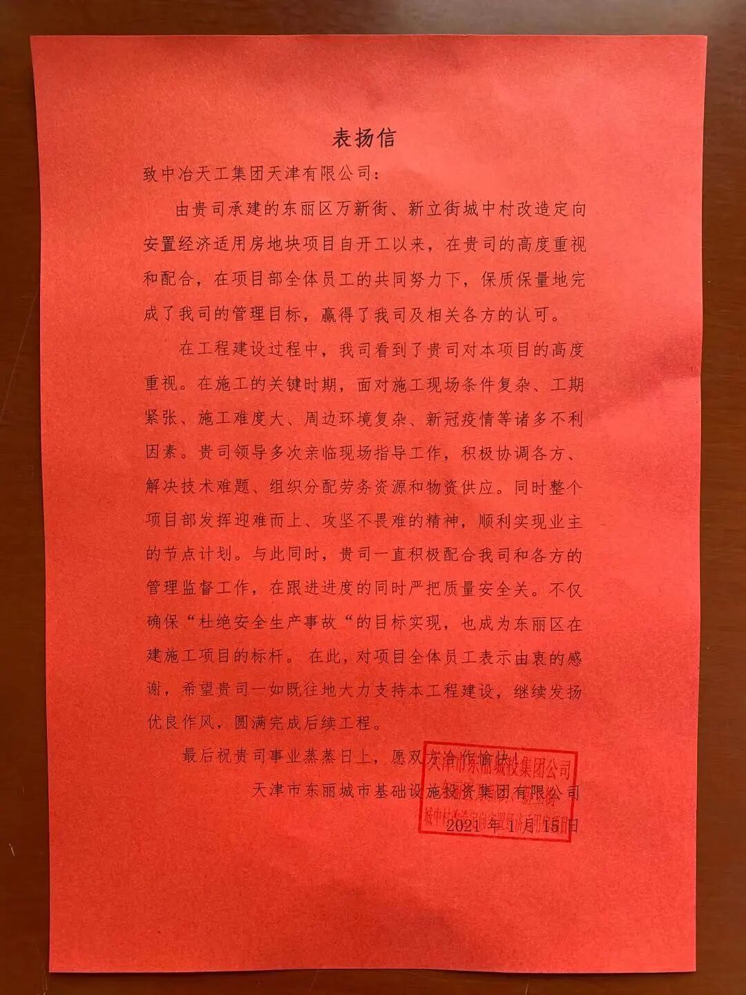 渤海公司哈尔滨道外区桦树二期棚户区改造项目收到业主向公司发来的感谢信,项目部在施工中相继克服了疫情影响、劳务人员短缺、工期紧、任务重、有效作业时间短、气温较低等诸多困难,科学组织、合理调配资源,圆满完成业主的节点计划目标,3250户老百姓全部按期入户。为此,业主对公司保质保量地完成节点任务提出表扬,并对参建项目部员工迎难而上、发挥攻坚不畏难的精神,表示高度认可。