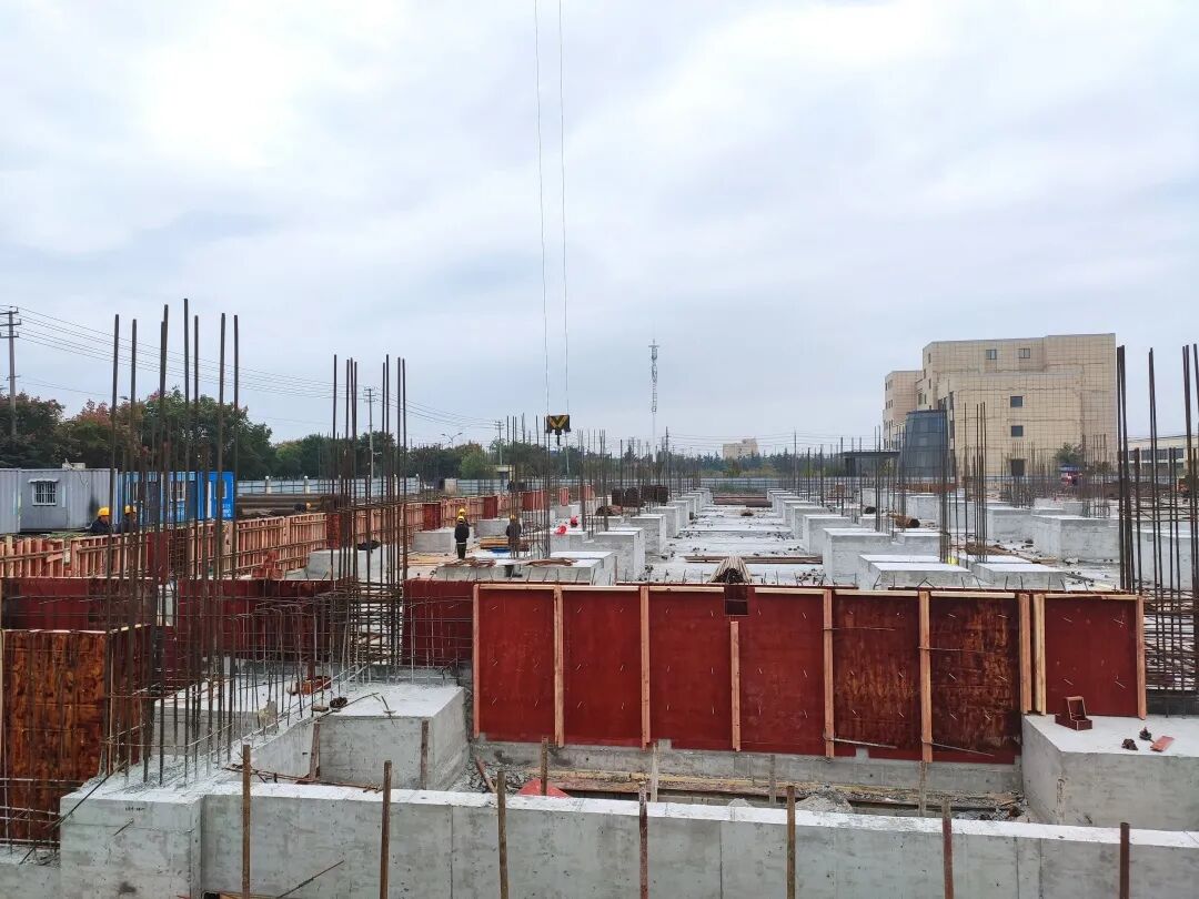 目前,现场1#车间、2#库房已完成基础部分施工,开始一层主体结构施工。10#、11#、17#、18#、19#、20#、21#、22#工业厂房正在进行基础部分施工,基础底板垫层、防水、底板、顶板等都在紧张施工作业中。两处深基坑支护桩已全部完成,随着开挖进度完成锚杆拉拔、边坡喷锚等工作。16#地下车库土方开挖工作已完成1/5,基坑底部承台也在陆续开挖中,23#污水处理池,土方开挖工作开始进行。其余几个小型单体也随着施工进度陆续开展。