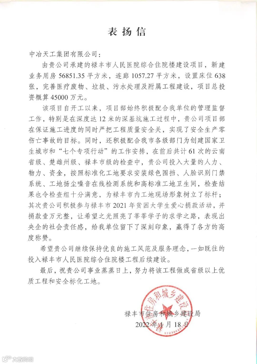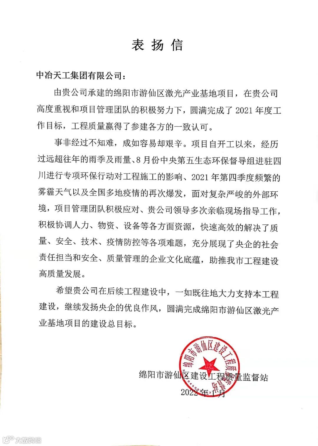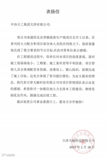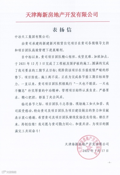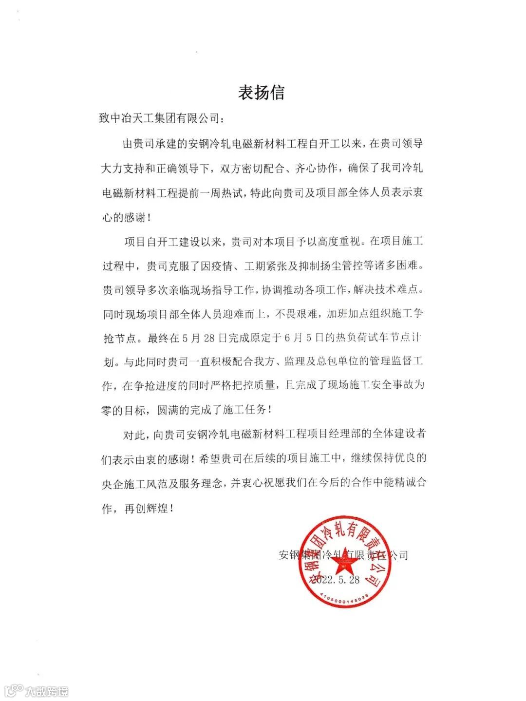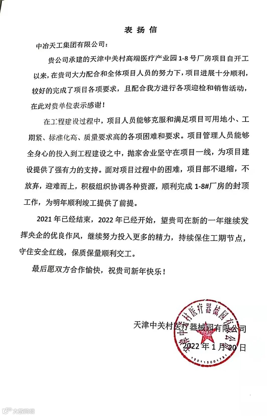 2022年开工至今,集团公司上下团结一心,攻坚克难,积极推动项目建设,全力推进全年指标,取得了一个又一个耀眼的佳绩,施工中我们力拔头筹,社会上我们勇于担当,抢险救灾、疫情援建、捐献公益等等领域都有着天工人的身影,中冶天工获得了社会各界的认可,至今,共收获表扬信、锦旗、荣誉证书等90余件,平均每月就有9份送到天工人的手上,这是对天工人匠心品质强有力的认证。