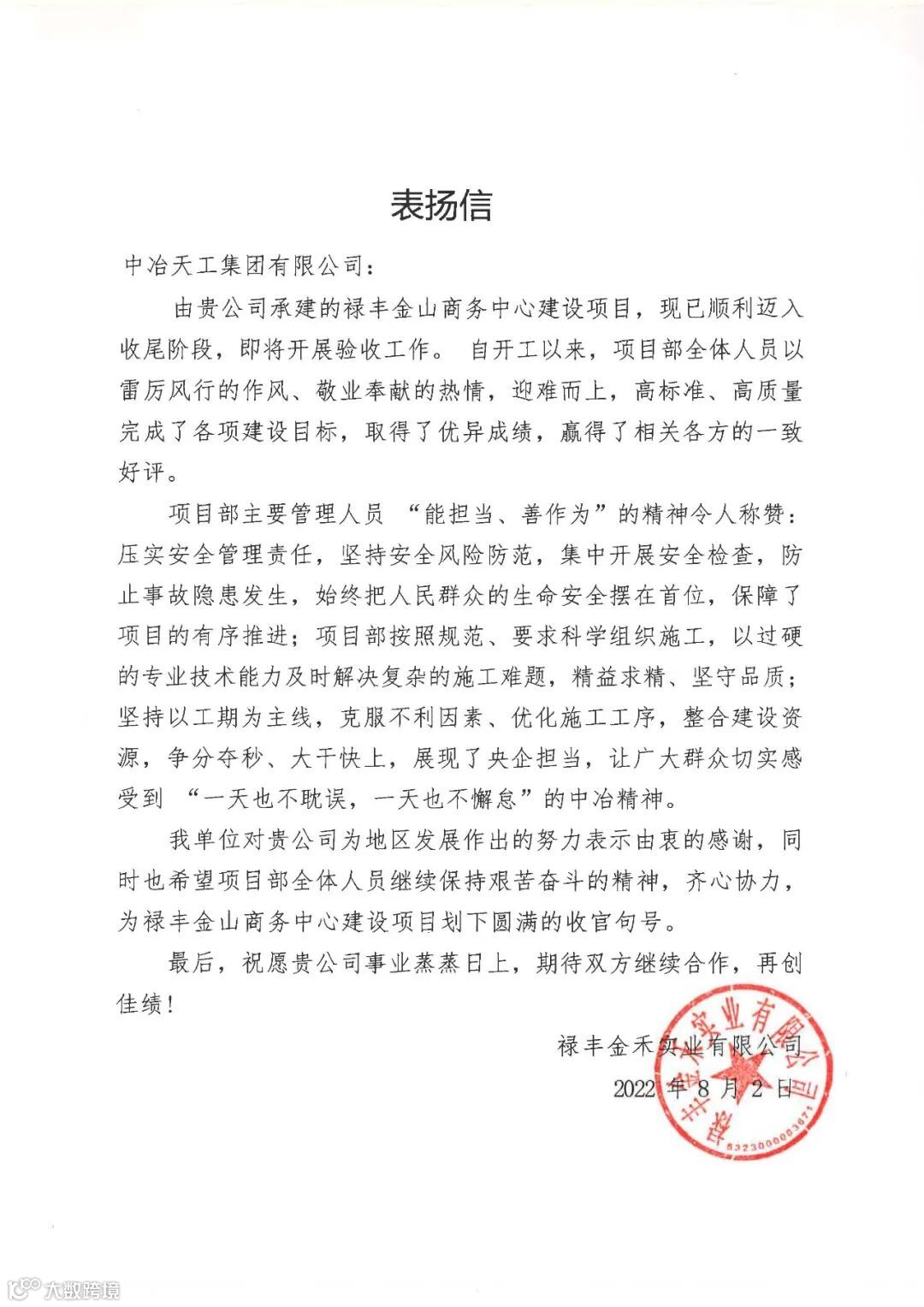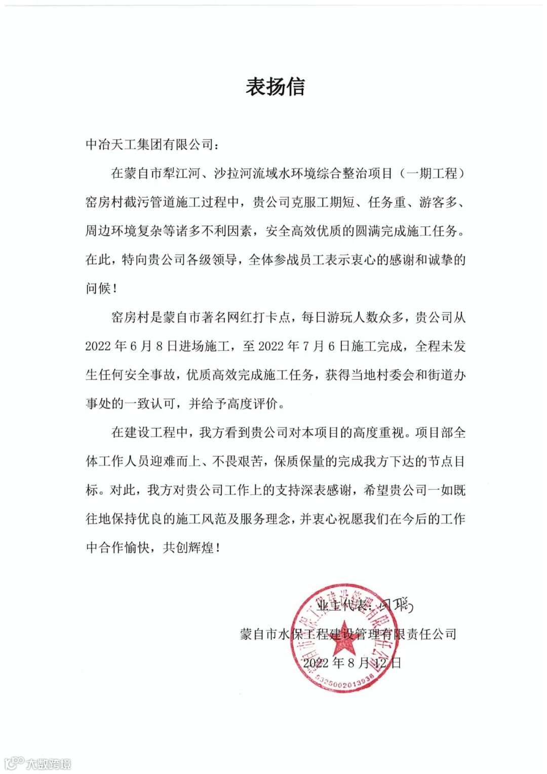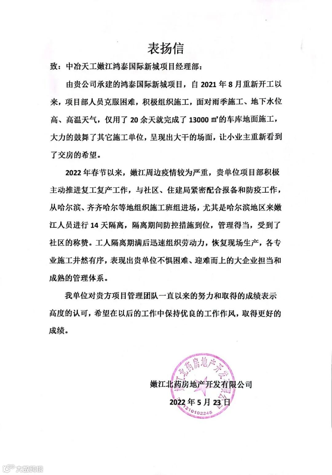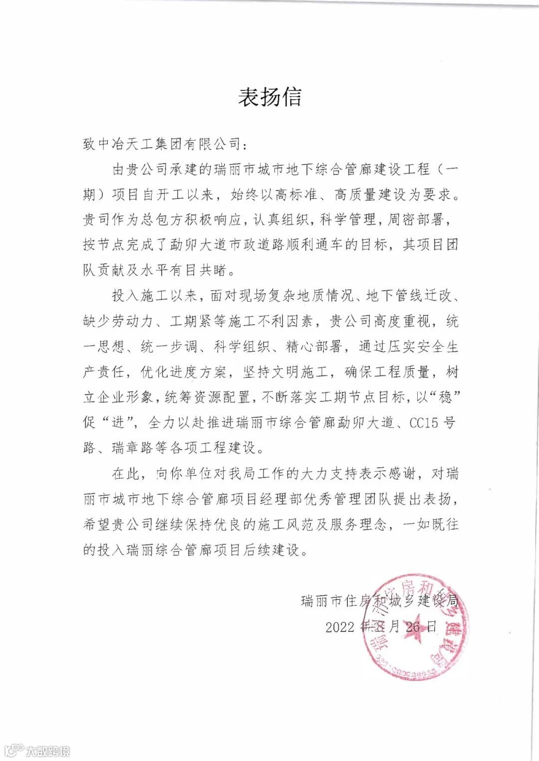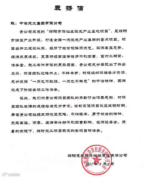 2022年开工至今,集团公司上下团结一心,攻坚克难,积极推动项目建设,全力推进全年指标,取得了一个又一个耀眼的佳绩,施工中我们力拔头筹,社会上我们勇于担当,抢险救灾、疫情援建、捐献公益等等领域都有着天工人的身影,中冶天工获得了社会各界的认可,至今,共收获表扬信、锦旗、荣誉证书等90余件,平均每月就有9份送到天工人的手上,这是对天工人匠心品质强有力的认证。