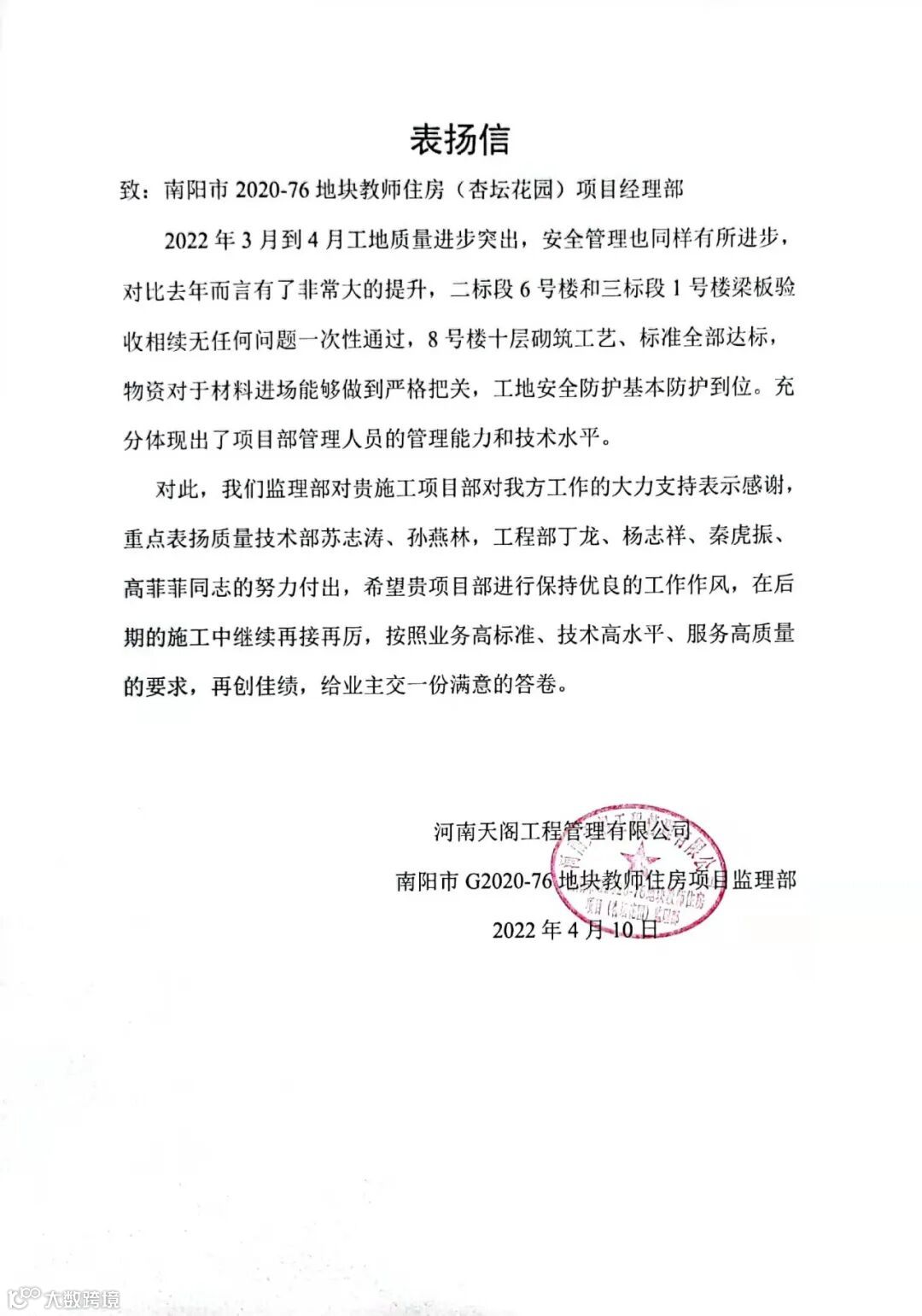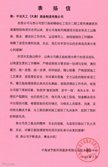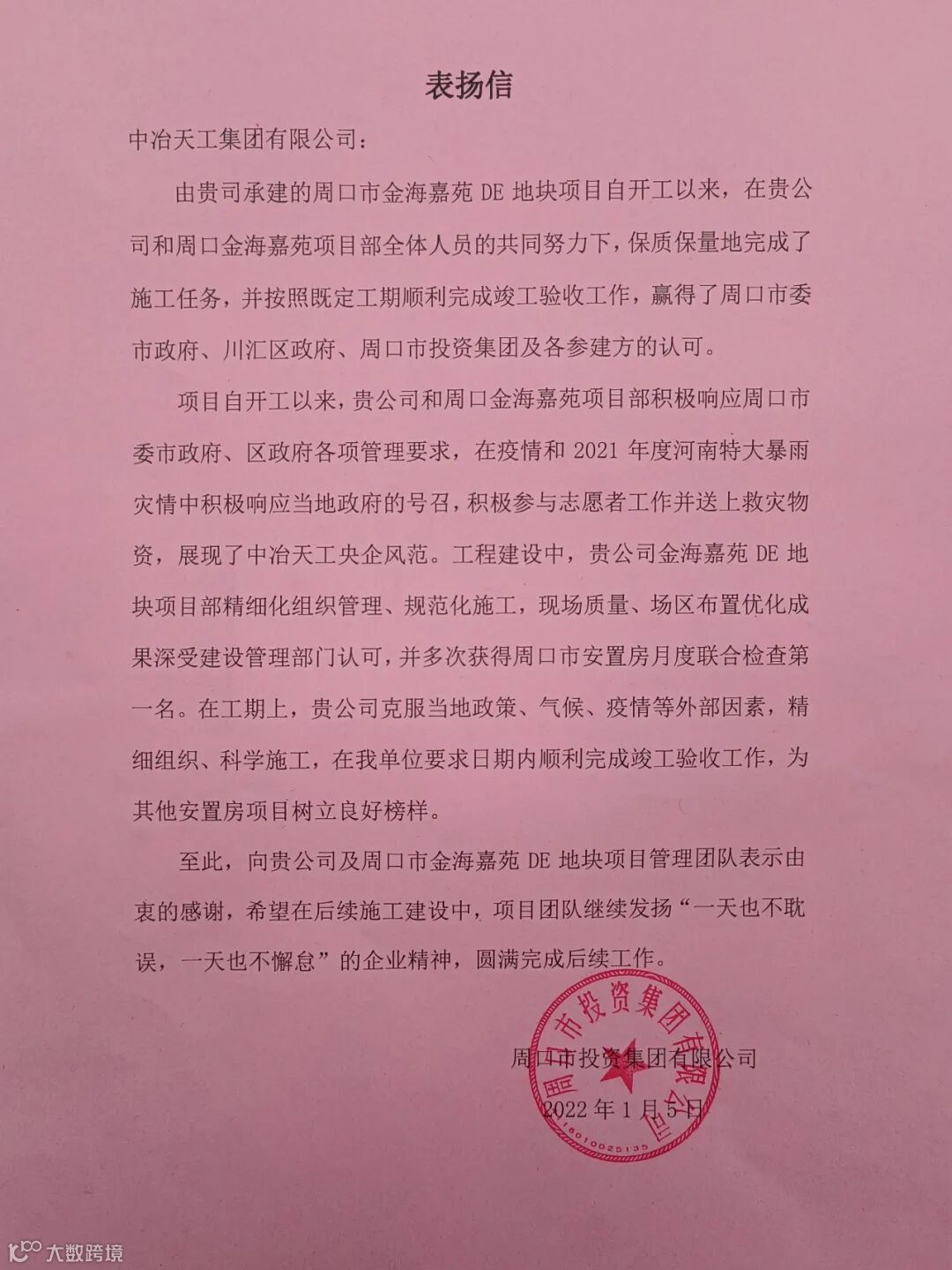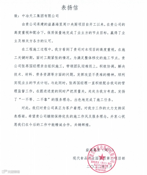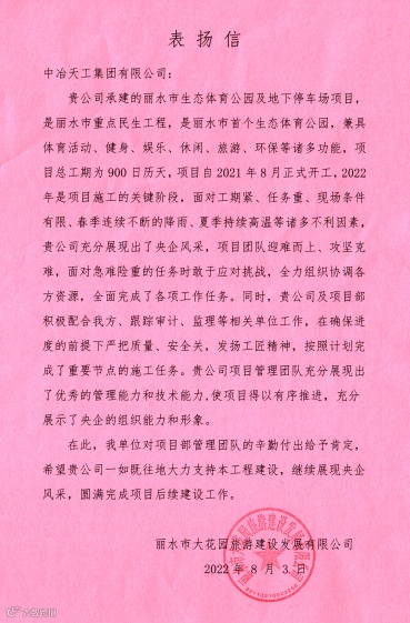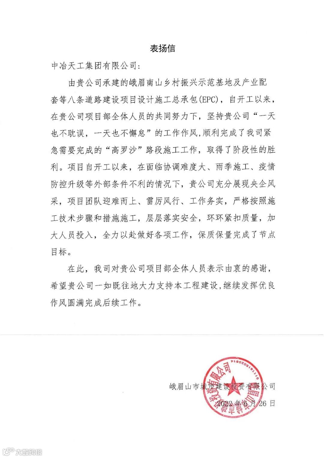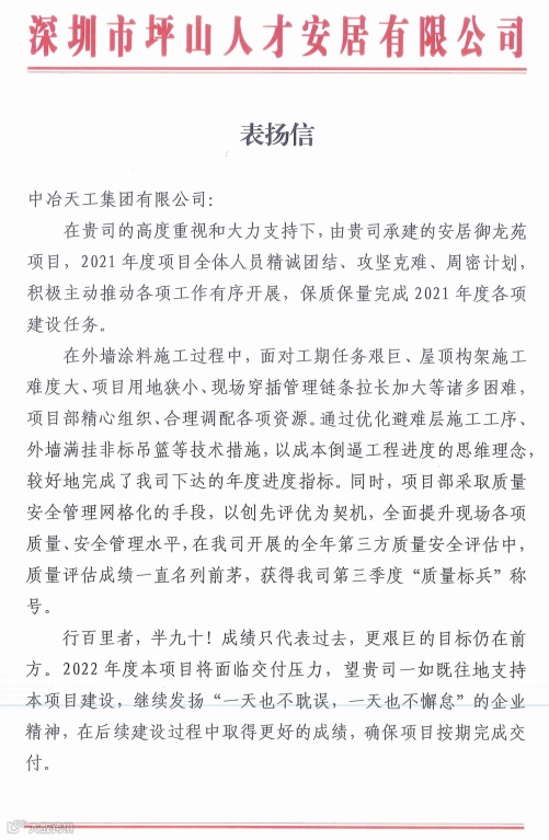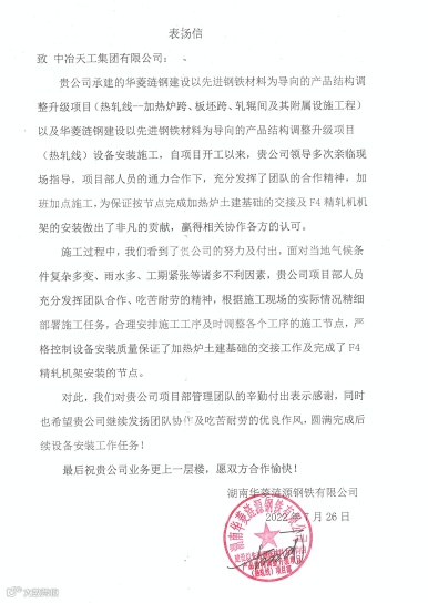 2022年开工至今,集团公司上下团结一心,攻坚克难,积极推动项目建设,全力推进全年指标,取得了一个又一个耀眼的佳绩,施工中我们力拔头筹,社会上我们勇于担当,抢险救灾、疫情援建、捐献公益等等领域都有着天工人的身影,中冶天工获得了社会各界的认可,至今,共收获表扬信、锦旗、荣誉证书等90余件,平均每月就有9份送到天工人的手上,这是对天工人匠心品质强有力的认证。