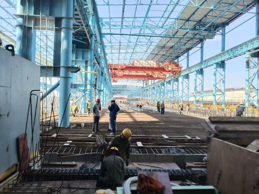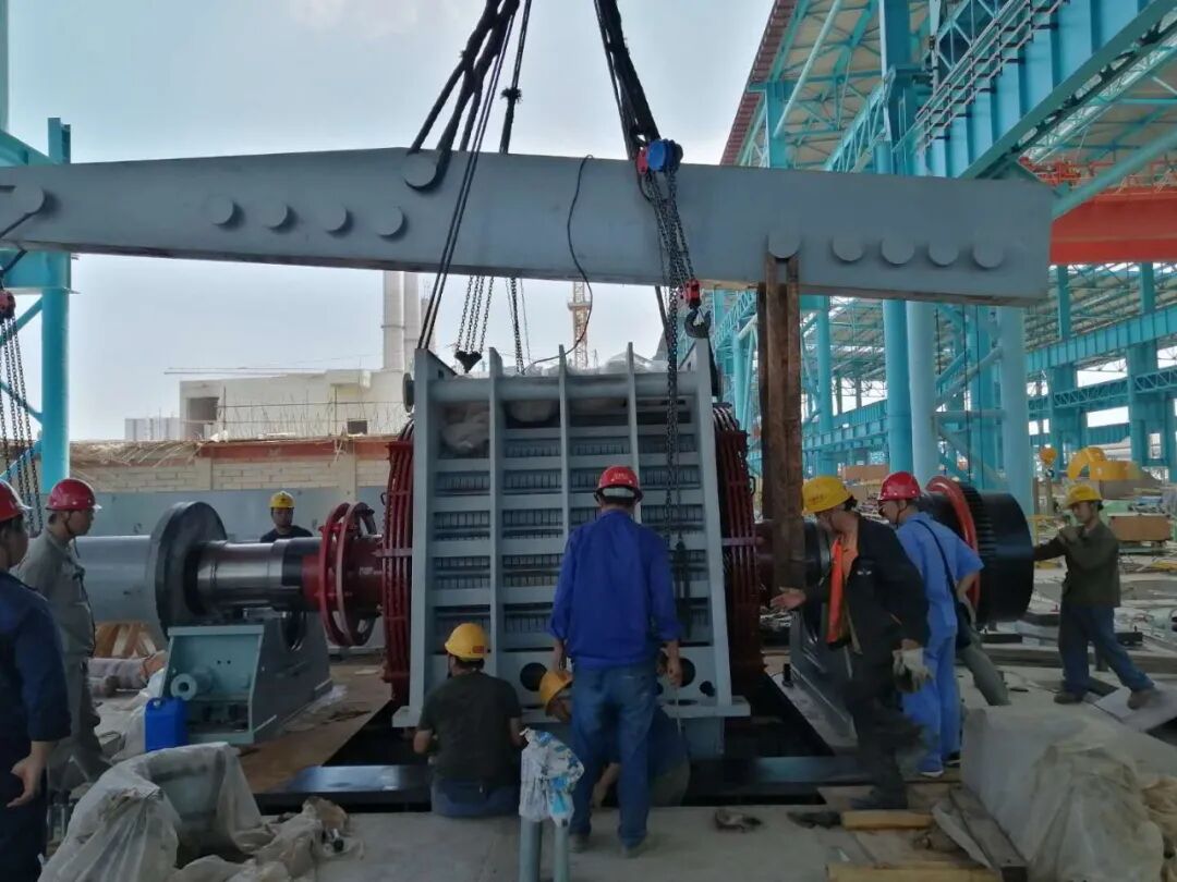 10月14日,防城港项目板材系统精轧机主电机安装成功。该台主电机在同类设备中功率大,重量最重,吊装难度大,安装精度要求高,项目部凭借详细充分的施工准备,最终顺利完成了主电机安装。