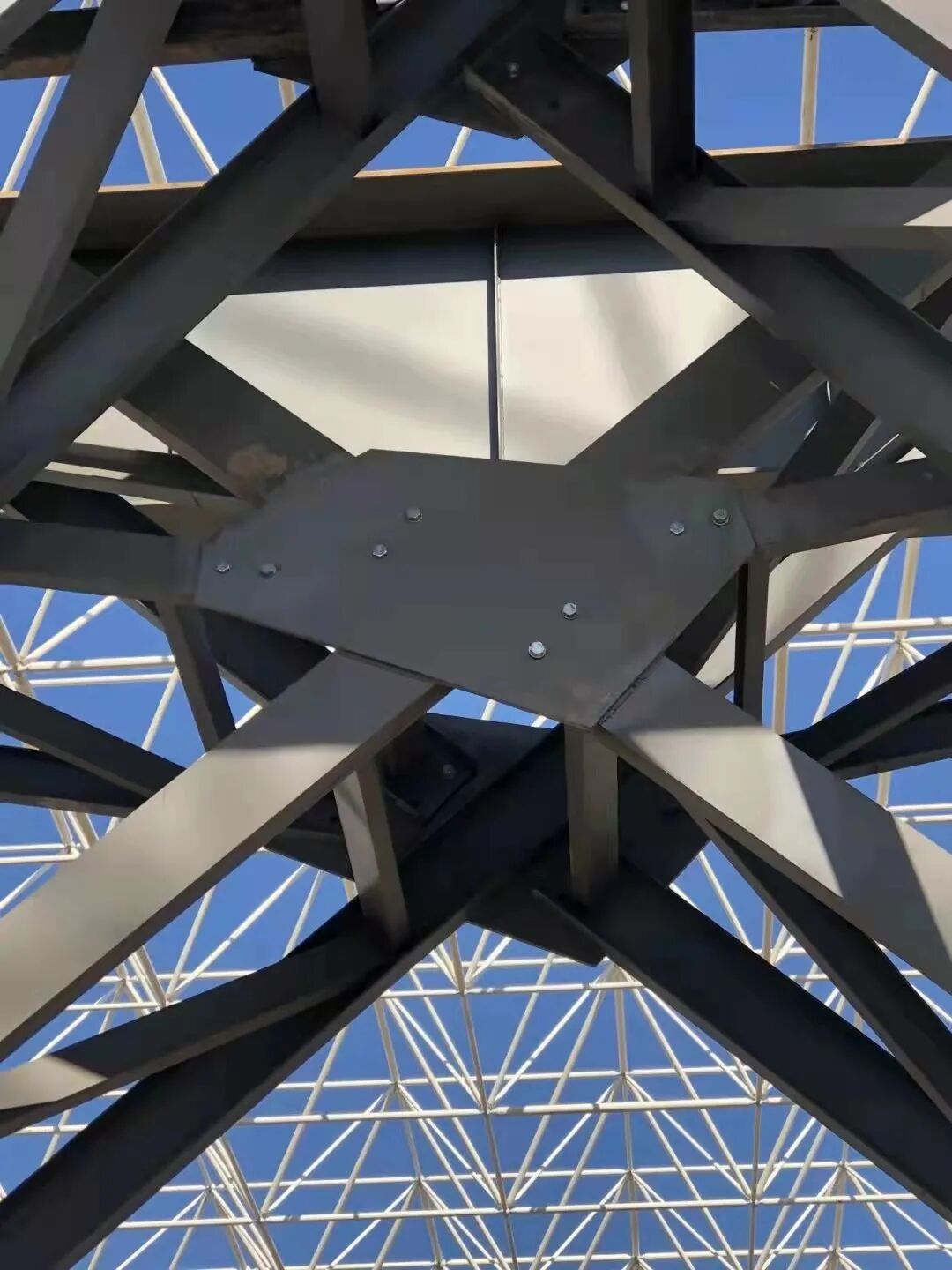 南方公司承建的招商局重工邮轮制造配套项目激光中心工程为单层钢结构厂房(局部多层),建筑面积约11.7万平方米,最大高度47.4米,是招商局重工(江苏)邮轮制造配套项目的重要组成部分,是江苏省2020年重点工程——海门招商局豪华邮轮项目的配套工程。工程主体全部采用钢结构,用钢量达1.2万余吨。钢柱采用排架,上柱为实腹式工字形钢柱,下柱为格构式双肢钢柱。钢柱最大跨距49米,最高高度43.8米。吊车梁采用焊接工字型截面吊车梁,吊车梁与柱采用简支连接,并设有制动结构、辅助桁架及水平支撑。最大吊车梁跨距49米,高度5.2米,翼缘板最大厚为60毫米,重量达到110吨。屋盖系统为网架体系加檩条体系的轻型屋盖,总面积9万平方米,单张最长25米。墙板采用压型钢板,总面积4.5万平方米。
