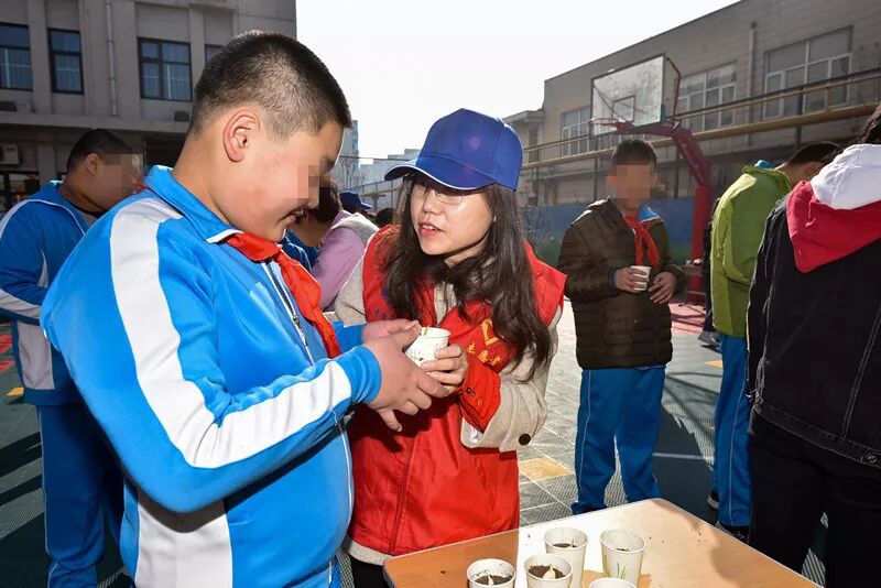“小花盆,放满土;埋蒜瓣,露出头;浇满水,晒太阳;一天一天就长大……”伴随着不太整齐却也尽心发出的清脆声音,我们把目光转向天津市津南区培智学校,那里正在进行着一场特殊的升旗仪式,学生们正用自己的方式来迎接植树节的到来。