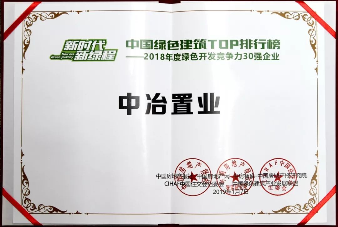 ▲ 中冶置业荣登2018中国房地产百强名单第40位