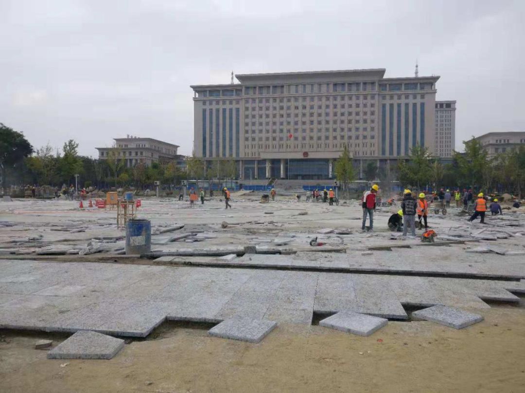 项目中标后,负责工程实施的中冶天工南方公司在最短的时间内组建了项目(经理)部,建立、健全了组织机构以及高水平的技术管理团队。在公司精心组织、合理安排下,项目部以积极主动的态度与业主及政府相关部门对接,对现场施工环境及外部施工环境进行摸底、分析。根据工程点多面广的特点,项目部按照“分区划片,突出重点”的思路,组织多支队伍施工,对于重点工程集中力量突破。和谐广场是2018年的重点工程,也是开工建设以后最大的工程,项目位于庆阳市区中心,北侧为庆阳市政府办公大楼,南侧为庆阳市博物馆,总占地面积87624平方米,共铺装陶瓷透水砖约6500平方米,花岗岩约28500平方米,透水混凝土约650平方米,种植绿地草坪约26000平方米,包括雨水收集管道、喷灌系统、景观照明、监控系统、景观水系改造等大量的设施。经过项目部科学管理,在国庆节前按时完成了任务,确保了工期节点。