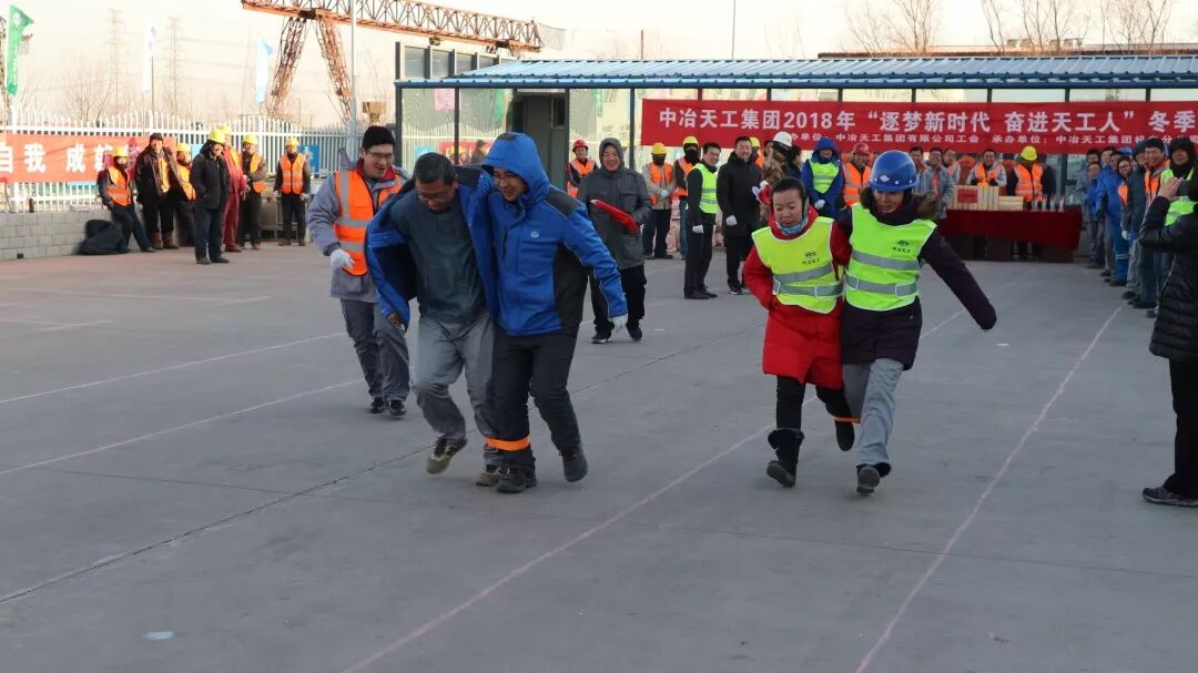 2018年,是全面深入贯彻落实党的十九大精神开局之年,是改革开放40周年,也是集团公司工会以持续推进忠诚之家、创新之家、和谐之家、温暖之家、活力之家建设为目标,用心打造具有天工特色的“天工·家”文化建设之年。为进一步丰富集团公司一线项目职工文化体育生活,大力弘扬团结拼搏、奋发向上的精神风貌,12月29日下午,集团公司工会主办、机电分公司承办在中冶新材料项目部举办了“逐梦新时代,奋进天工人”为主题的冬季职工趣味运动会。