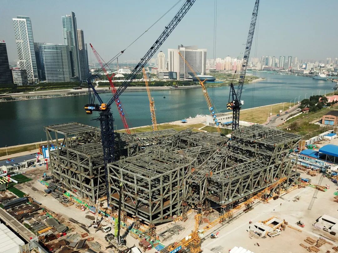 第三阶段:主体钢结构封顶于2018年9月10日完成,对项目具有里程碑意义的目标,标志着项目建设进入了全新的阶段。
