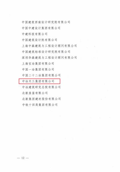 2017年11月9日,住建部办公厅公布首批装配式建筑示范城市和产业基地名单:中冶天工集团被认定为第一批装配式建筑产业基地。同时,也是装配式建筑产业创新联盟理事单位、天津市装配式建筑工程技术中心合作单位。