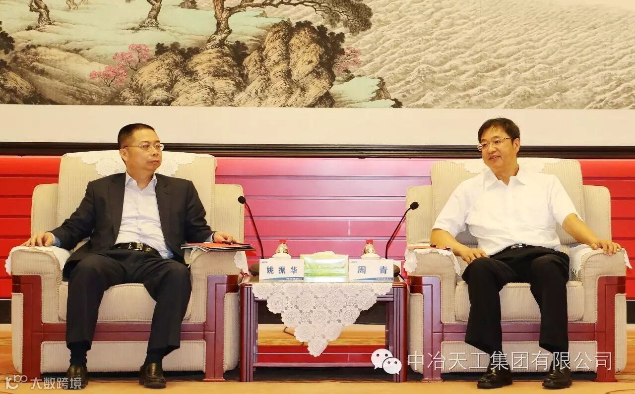 仪式举行前,集团公司董事长、党委书记周青会见深圳宝能集团董事长姚振华一行,代表中冶天工对客人来访表示欢迎,双方在友好的氛围中就开展战略合作进行深入交流。