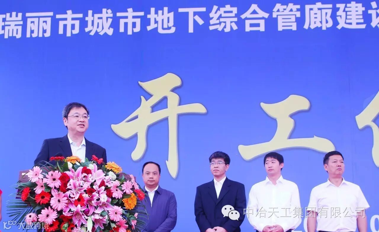 瑞丽市市委副书记、市人民政府代理市长谢大鹏在仪式上发表了讲话;德宏州委常委、瑞丽市国家重点开发开放试验区党委副书记、瑞丽市委书记马云峰宣布瑞丽市城市地下综合管廊项目开工,并启动项目仪式球。中冶天工集团总会计师贾博及相关单位负责人参加有关活动。