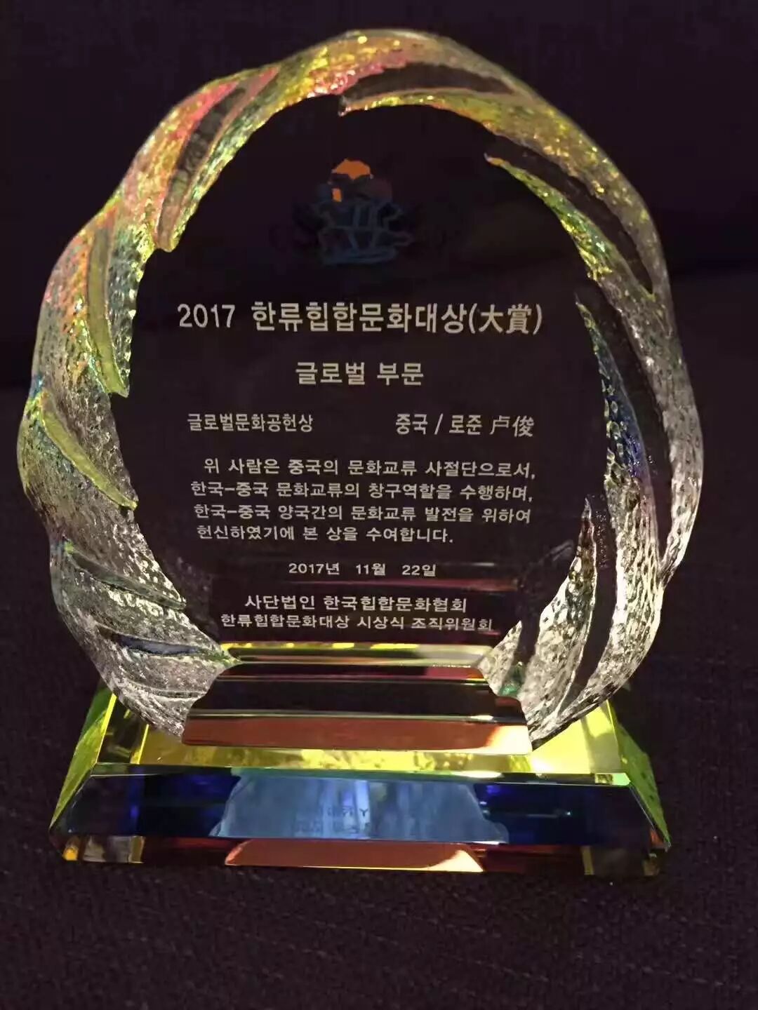 鼎岳文化总经理卢俊,再次荣获韩国文化部嘻哈协会授予特别贡献奖