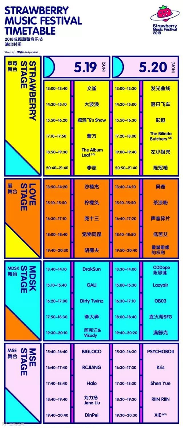 五大舞台:草莓舞台、爱舞台、MDSK舞台、MSE电音舞台、Young Blood新血计划舞台