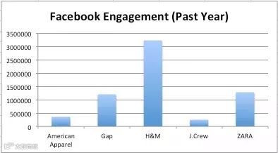 根据Socialbakers的数据,相比较Gap,J.Crew甚至是Zara,H&M在Facebook上和粉丝互动的过程中,粉丝参与度是最高的。在Instagram上,H&M的用户参与度同样也是最高的。H&M在Facebook上一共有2200万粉丝;在Instagram上一共有800万粉丝;而在Twitter上一共有600万粉丝。