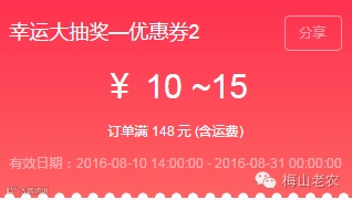 参与方式:在梅山老农公众号中回复“抽奖”,根据提示获取本次幸运大抽奖活动地址