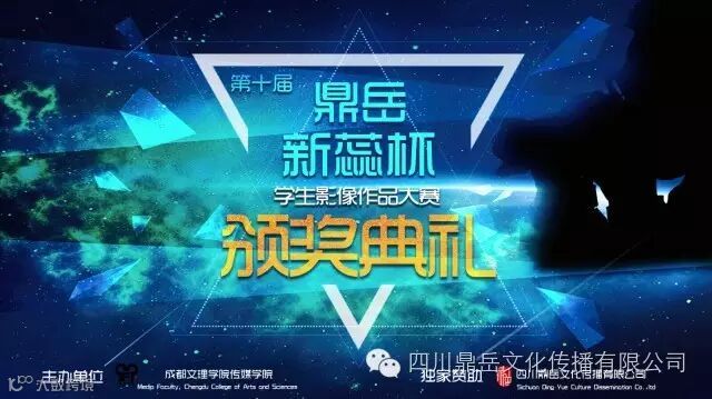 2016年6月14号在成都文理学院星空剧场将会迎来第十届新蕊杯盛大颁奖典礼,本次典礼依旧由成都文理学院传媒学院主办,鼎岳文化作为独家赞助商将与成都文理学院一起见证传媒学院的学子对于电影的热爱, 对于梦想的追求。