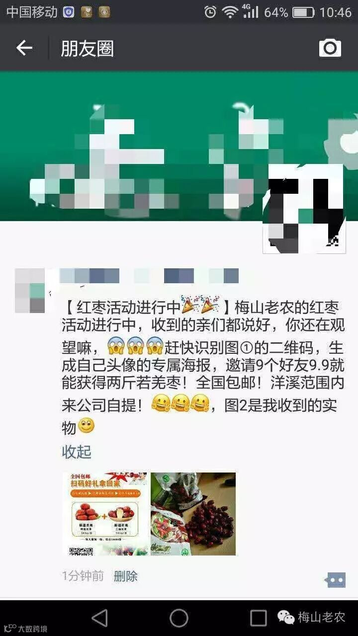活动模式以洋溪电商--梅山老农发布为准,本次活动真实有效,开始时间为2016年11月23日,完成任务活动后请在梅山老农商城下单,我们会在72小时内进行发货。参与方式以洋溪电商--梅山老农活动模式为准,若以其他形式传播均与洋溪电商--梅山老农活动无关,给朋友圈某个人转9.9元领取红枣等方式均无效参与。对于恶意误导、造谣本次活动行为一经发现,将追究相关责任。