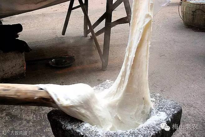几乎每个小男孩都有打糍粑的愿望,因为只有最强壮的男人才有这样的荣耀。打糍粑,要快准狠稳。快,就是趁热打快,因为糯米粘性强,慢了就会粘上木棍了。准,即两根棍都打在同个位置,别一不小心打到石臼外围,或打到另一根木棒上了。狠,无非就是打得用力,糯米才能散得畅。还有稳,手要握紧,用力得均匀,保证从头到尾的力度一样,糯米才打得瓷实呢。