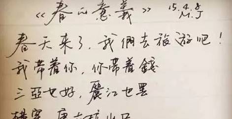 一位上海的麻麻给正在上大学的孩子写了首诗,诗里写到:“春天来了,我们去旅行吧!我带着你,你带着钱,你一定要带着钱啊!”这位可爱的妈妈将“你一定要带着钱”的现实融入到高大上的诗意里,不少网友读着读着就乐了。