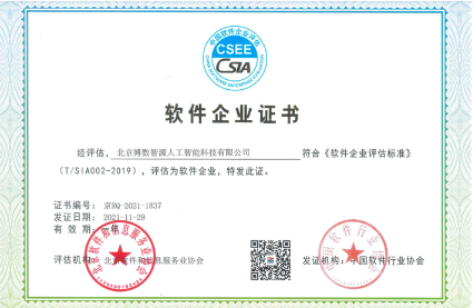 近日,博数智源再添重磅资质,经中国软件行业协会严格审核,博数智源公司及相关产品符合《软件企业评估标准》、《软件产品评估标准》,荣获《软件企业证书》和《软件产品证书》,自此我司正式跻身“双软企业”行列。