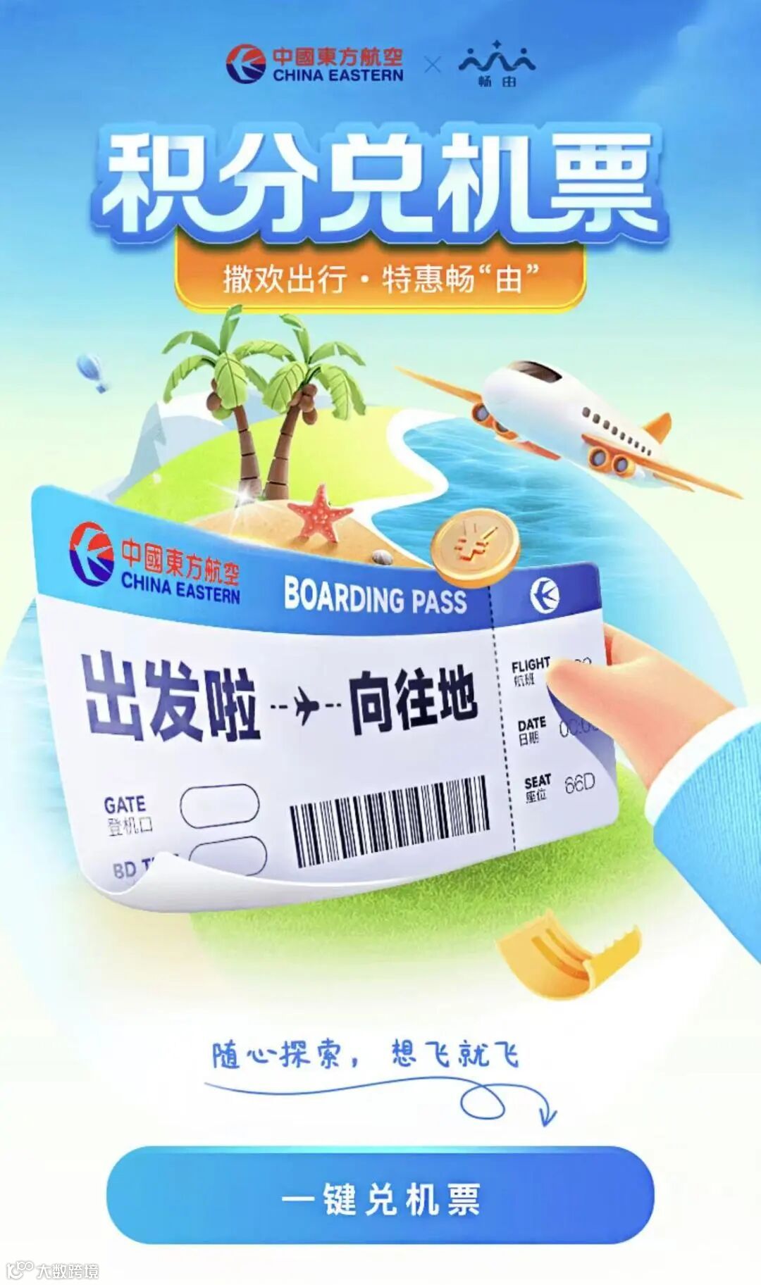现在,用积分直接当钱花,兑换东方航空机票的机会来了!轻松几步,把积分变成飞向诗和远方的翅膀,大幅降低出行成本!