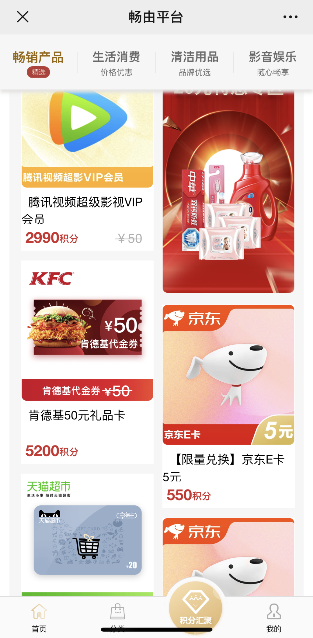 用户可参与限时抢购等活动,花费少量积分或现金,兑换心仪商品。