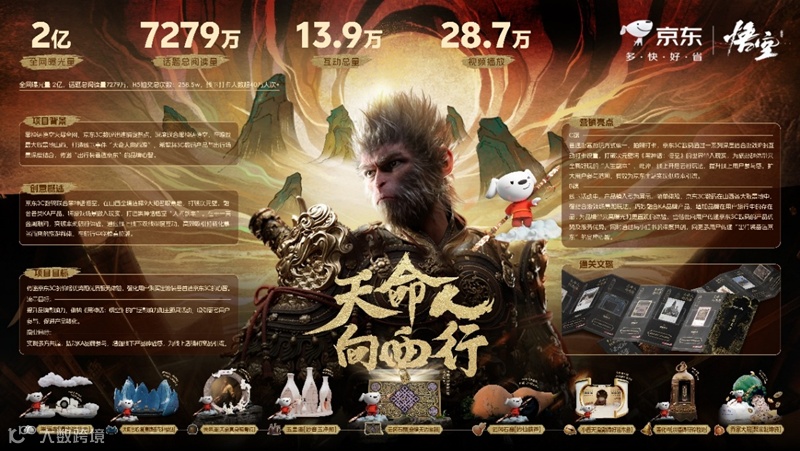 2024年十一黄金周,京东3C通过精准的消费者洞察,借势游戏《黑神话:悟空》IP及山西文旅热度,策划并打造了一场融合游戏内容、旅游文化以及产品体验的营销大事件,用文化与创意赋能营销,直击当代年轻打工人痛点,成功实现品牌推广与产品销售的双重突破。此次联动,成功承接了首个现象级国产游戏带来的热度以及十一黄金周期间旺盛的文旅流量,实现了两种流量的叠加效应,在推广京东3C数码品牌之外,也为山西文旅注入了新的活力,以及为游戏文化的传播开辟了新的路径。
