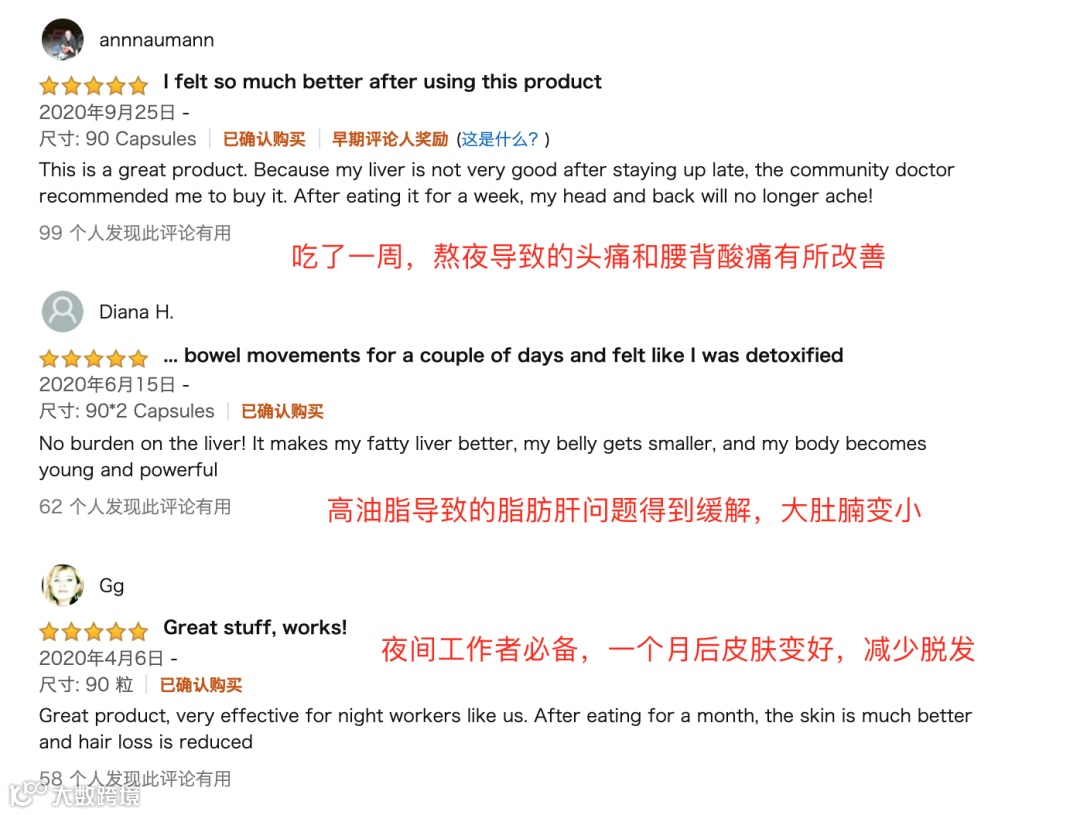 “身体有活力、脱发减少”“肝脏健康,大肚腩变小”“熬夜、酗酒、暴饮暴食护肝人士必备”