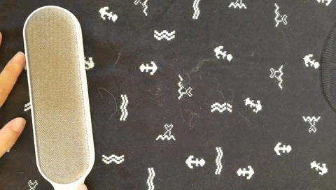 它是通过静电吸附的原理去除毛发、灰尘的,不伤衣物,也不需要更换黏胶带,贼方便!
