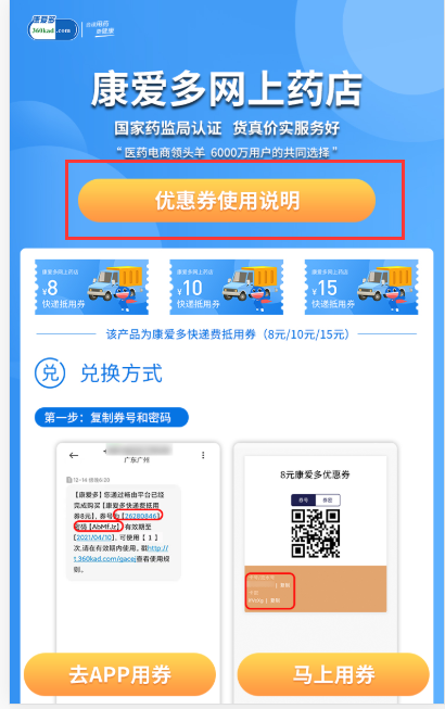 1、兑换成功后,可登陆康爱多APP或关注【康爱多网上药店】公众号查看。