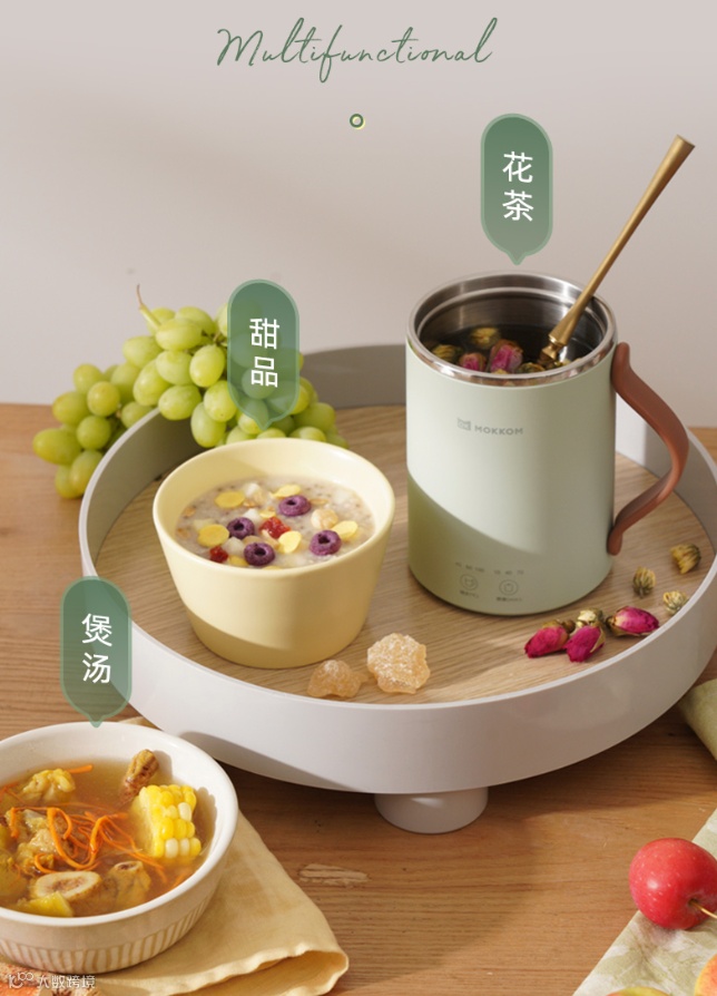 在办公室用壶煮养生粥、养生茶或许还会有同事过来蹭几口,而使用一人份的养生杯就没有这个烦恼。