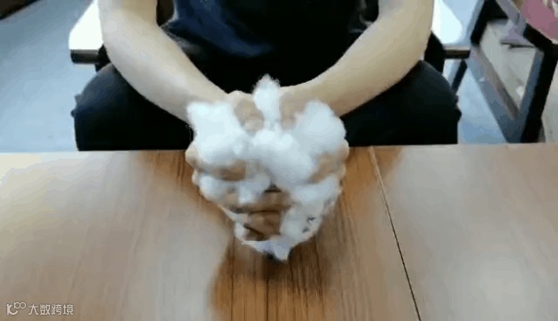 仔细看看,纤维纤细如丝,互不粘黏,给空气预留充足的空间,所以它的蓬松性特别的好~
