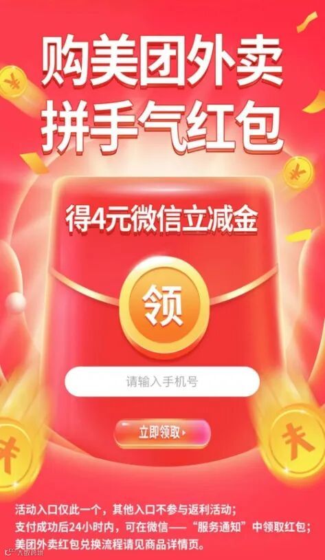 活动入口仅此一个,其他入口不参与本活动,支付成功后24小时内,可在微信"服务通知"中领取红包;