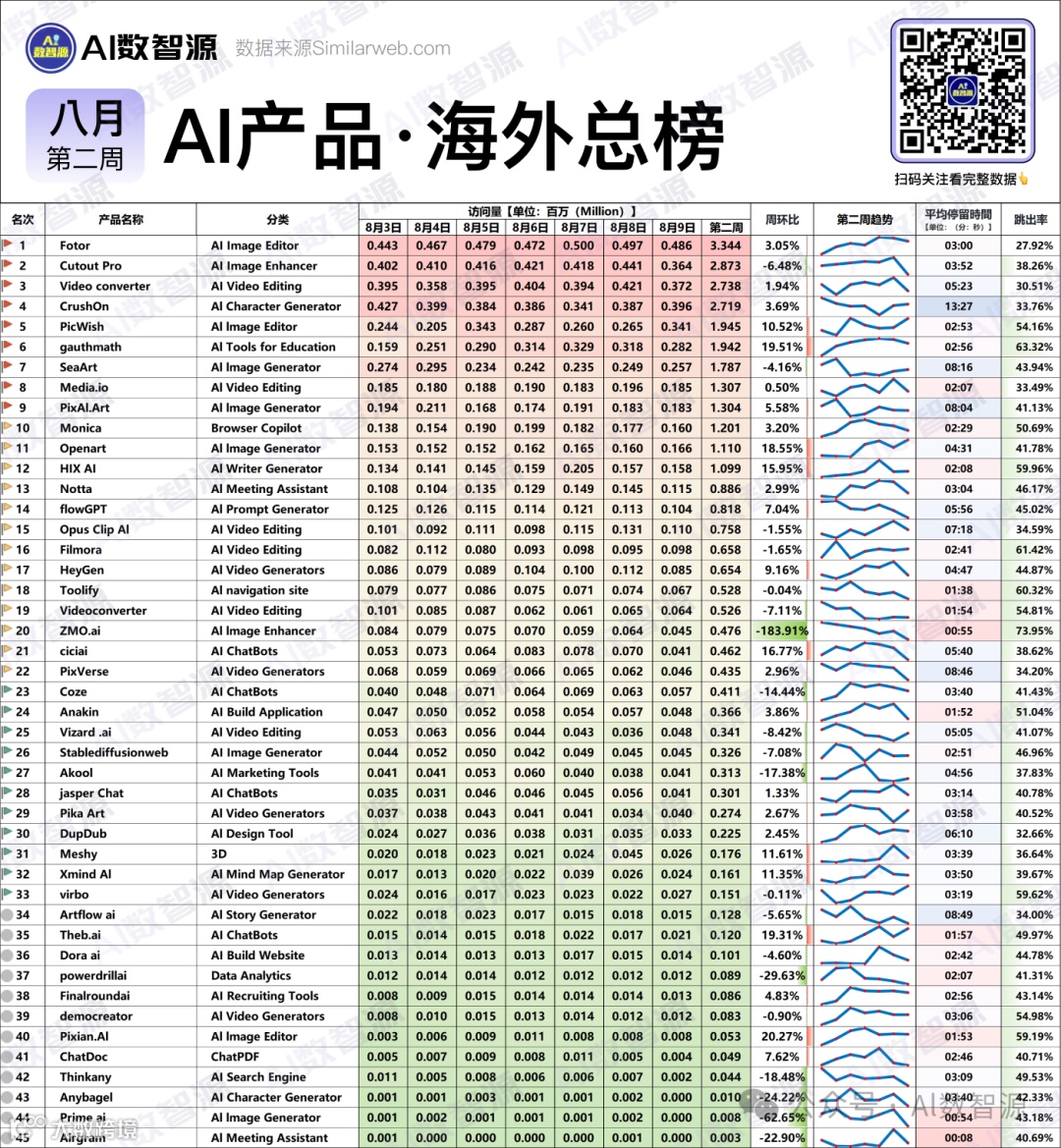 AI数智源,公众号:Al数智源数智源AI产品榜单丨海外AI产品8月总榜(第一周数据)