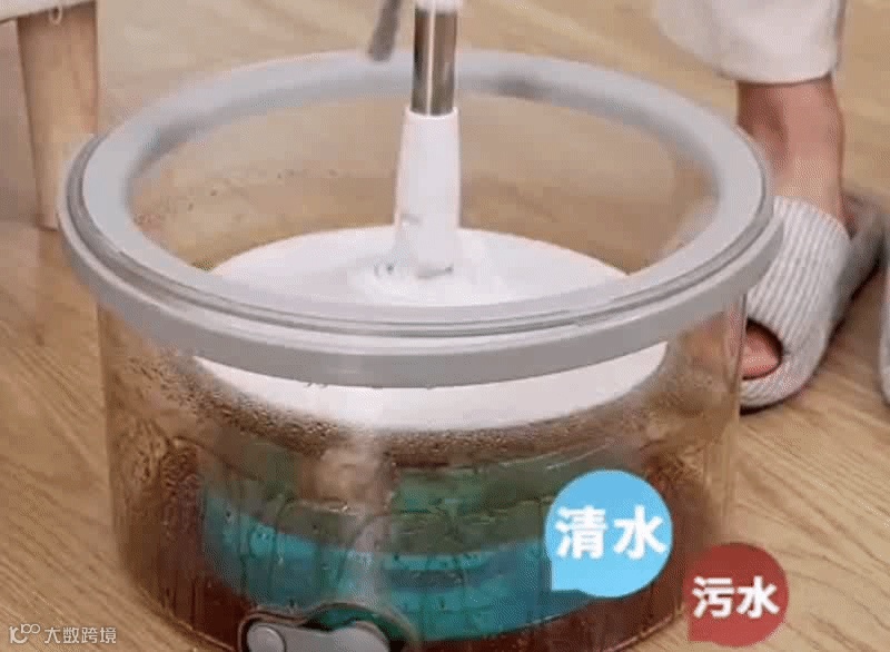 只需拖把往桶里一按,就像滚筒洗衣机一样,转转转,脏水清水自动分离。