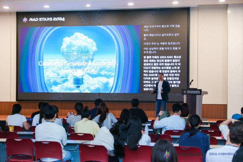 今年的MAD STARS以“AIM,以人工智能瞄准成功营销(Aim Marketing Success with AI )”为主题,共同探讨AIGC等前沿技术在营销领域的应用与未来趋势。今年,蓝色光标与釜山国际广告节(MAD STARS)达成战略合作,以蓝色光标在全球AI创新领域的卓越表现,全面赋能本届釜山国际广告节的AI创新体验:涵盖从AI主题宣传片到AI驱动创作的评委创意形象等多项创意内容和AI相关议题,为本届广告节创造与AI深度结合及创新体验的同时,也受到海内外行业精英与大赛评委们的高度赞誉。