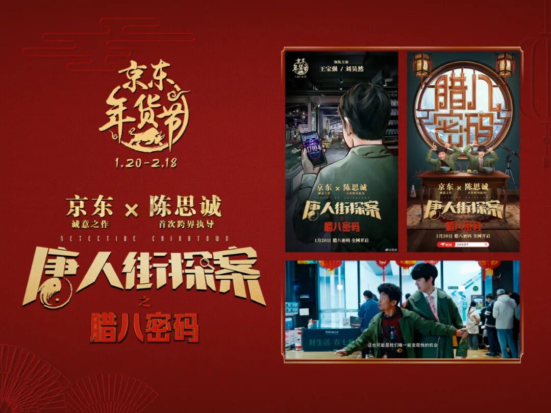 在京东腊八年货节到来之际,项目借势京东X唐探3IP的深度合作,利用核心视频物料打造年货节广告片。以电影宣发为传播思路,以#唐人街探案之腊八密码#为传播话题,抓取核心受众,制造悬念,捆绑剧情,传递“买年货,逛京东,看唐探,闹东京” 信息,为京东年货节造势引流。