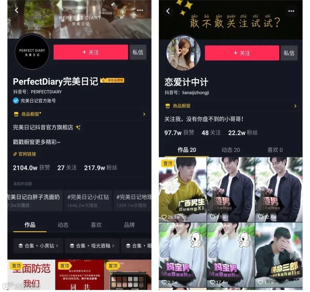 完美日记在品牌IP人格化运作的时候,精准锁定年轻用户,通过自制短剧、自制IP账号《恋爱计中计》的方式获得客户流量。