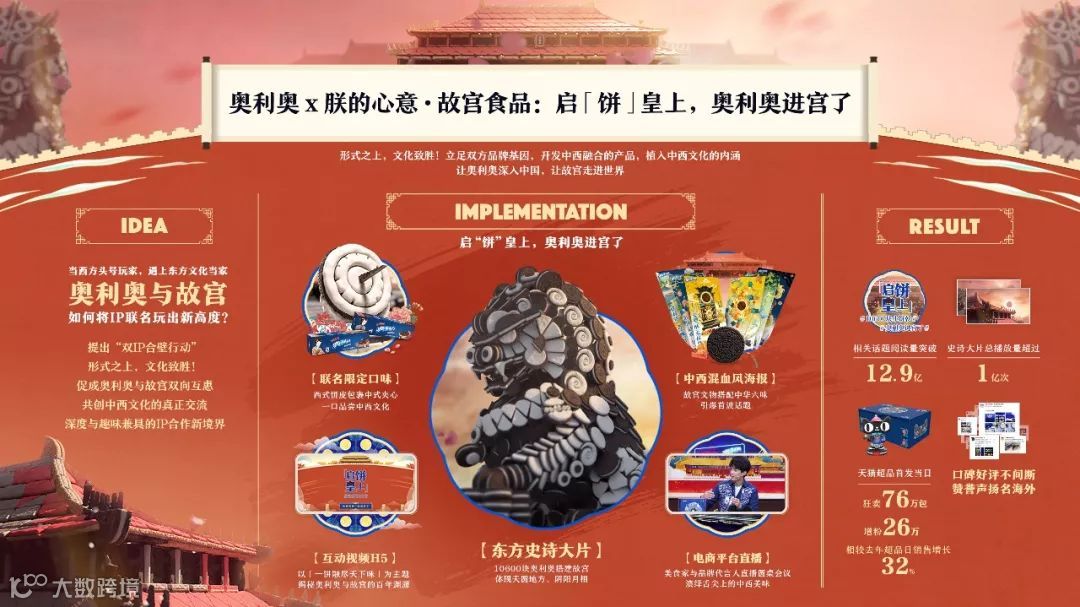 2019年5月,奥利奥与故宫官宣联名推出“宫廷御点中华六味”,以奥利奥经典可可饼包裹中式风味夹心,给予消费者一饼融尽天下味的玩趣体验。作为奥利奥在中国的Leading Agency,此次蓝标颠覆了传统IP合作的模式,立足品牌双方的精神内核,以文化制胜,帮助品牌完成了一次刷屏营销。为了传递东西方文化玩在一起的概念,我们打造了一支用10600块奥利奥搭出的故宫史诗大片,短片制作需完成多项考察,历经跨国合作、三地时差、四种语言,最终我们在26天内完成了这项极限挑战。此外,还有诸多创意动作助力造势——国风文物海报全线预热,以故宫文物搭配中华六味,吸引大批国风爱好者,扩大活动触及圈层;互动H5故事,趣味揭秘奥利奥与故宫的百年渊源,将品牌与史实结合,提升品牌文化价值;舌尖论道美食家与品牌代言人直播圆桌会议,畅谈古代宫廷饮食趣味史实,强化品牌社会价值;「移动故宫」纽约快闪活动,打造奥利奥版“舌尖上的中国”,通过东方美味实现文化出海。在短短一个月的传播期内,通过线上线下多平台全方位整合营销,不仅玩出了内涵,更玩出了高度,实现了口碑与销量的双赢。