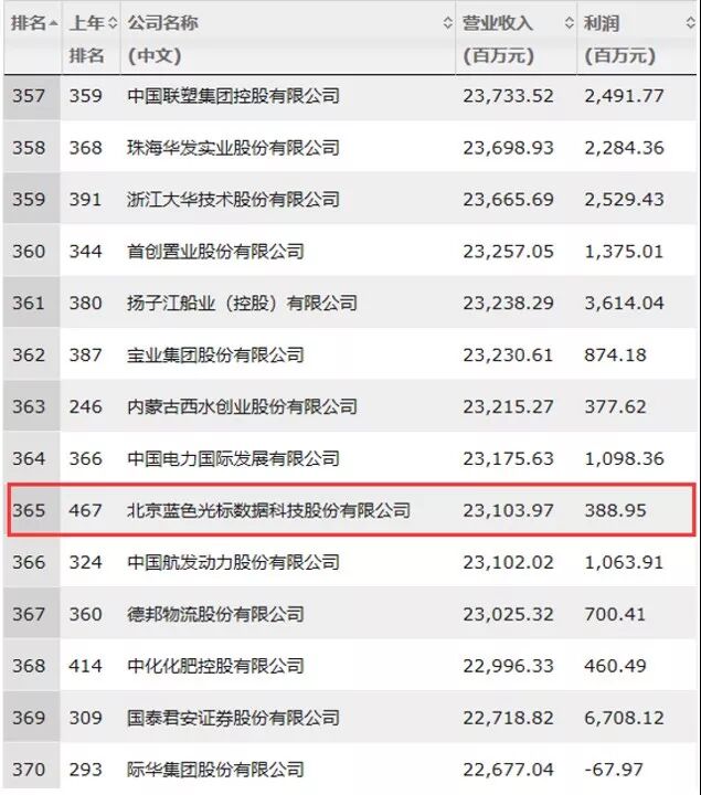 7月10日晚,财富中文网发布了最新的《财富》中国上市公司500强排行榜,蓝色光标凭借2018年231.04亿元的总营收再登榜单,排名跃升至第365位,仍是仅有的一家进入榜单的营销企业。