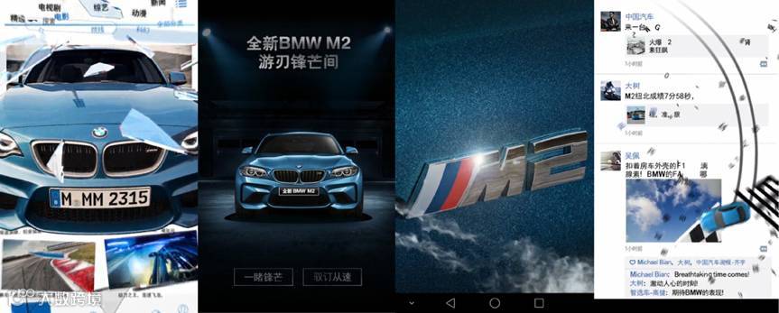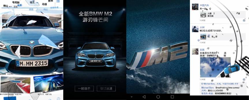 今年上半年能够达到病毒式传播的神级案例首推宝马的这支H5(77分钟内便获得了10w+的阅读量),先模拟一则新闻页面,当用户点击后,新闻网页像纸一样被BMW M2跑车划破,接着视频新闻、朋友圈和音乐播放器都被它呼啸碾过,视觉、节奏和音效都堪称大片级效果,极具冲击力。别以为这就完了,最后BMW M2给了你两个选项,当你选择“一睹锋芒”时,另一段以视频为主的精彩H5再次惊艳你的眼球:超模Gigi上了5辆中的其中一辆BMW M2,跟上她的速度了吗?猜一下她到底上了哪辆车。