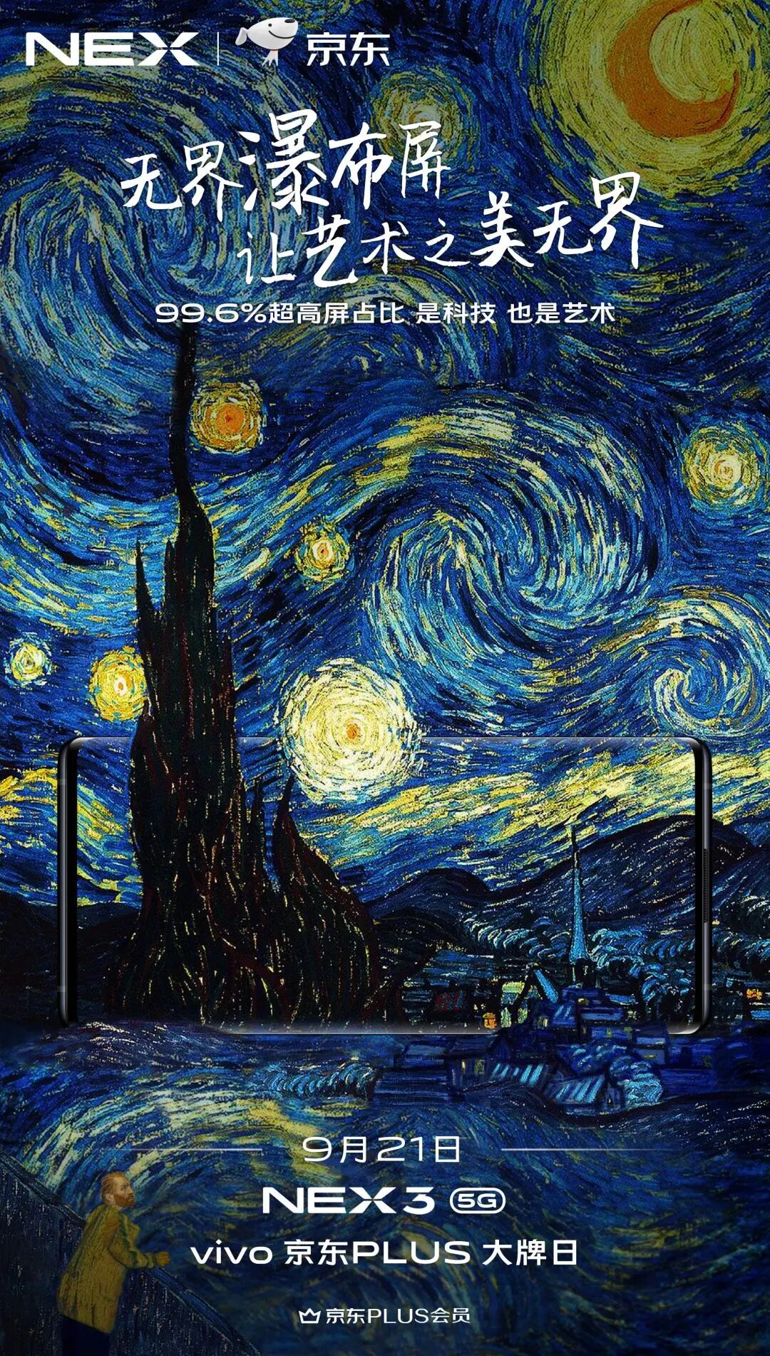 以“艺术展”视频作为核心传播创意,官方发起 #梵高的秘密#话题,发布系列创意海报,直观展示NEX 3 核心卖点,延续视频热度,传递vivo京东PLUS大牌日活动信息。