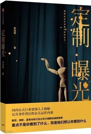 最近,CCTV 2某节目中推荐了一本与公关行业密切相关的书,叫作《定制曝光》。据说内容超级火爆,讲述了一个关于“一位酒店男公关在自己三十岁的时候完成了把战场从床上转移到职场上的巨大转变”的故事。