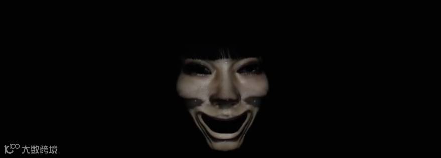 视频中两名舞者在忽明忽暗的灯光下跳舞,一束束虚拟投影在两人的脸上形成黑色泪水和文字等图案,舞者的脸庞接连变成骷髅和日本能剧面具中的恐怖笑脸,视觉效果颇为震撼。