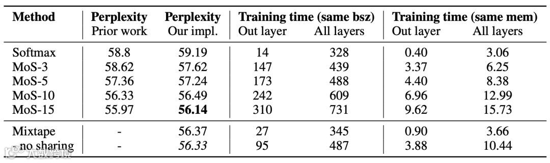 表 3:模型在 Penn Treebank 上的困惑度和训练时间对比情况。