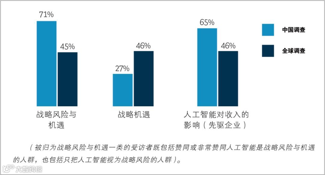 尽管全球对人工智能的风险意识不断增强,但这种趋势在中国受访者中尤为显著。71%的中国受访者将人工智能视为企业的战略风险与机遇,该比例高于2018 年的 41%(参阅上图)。