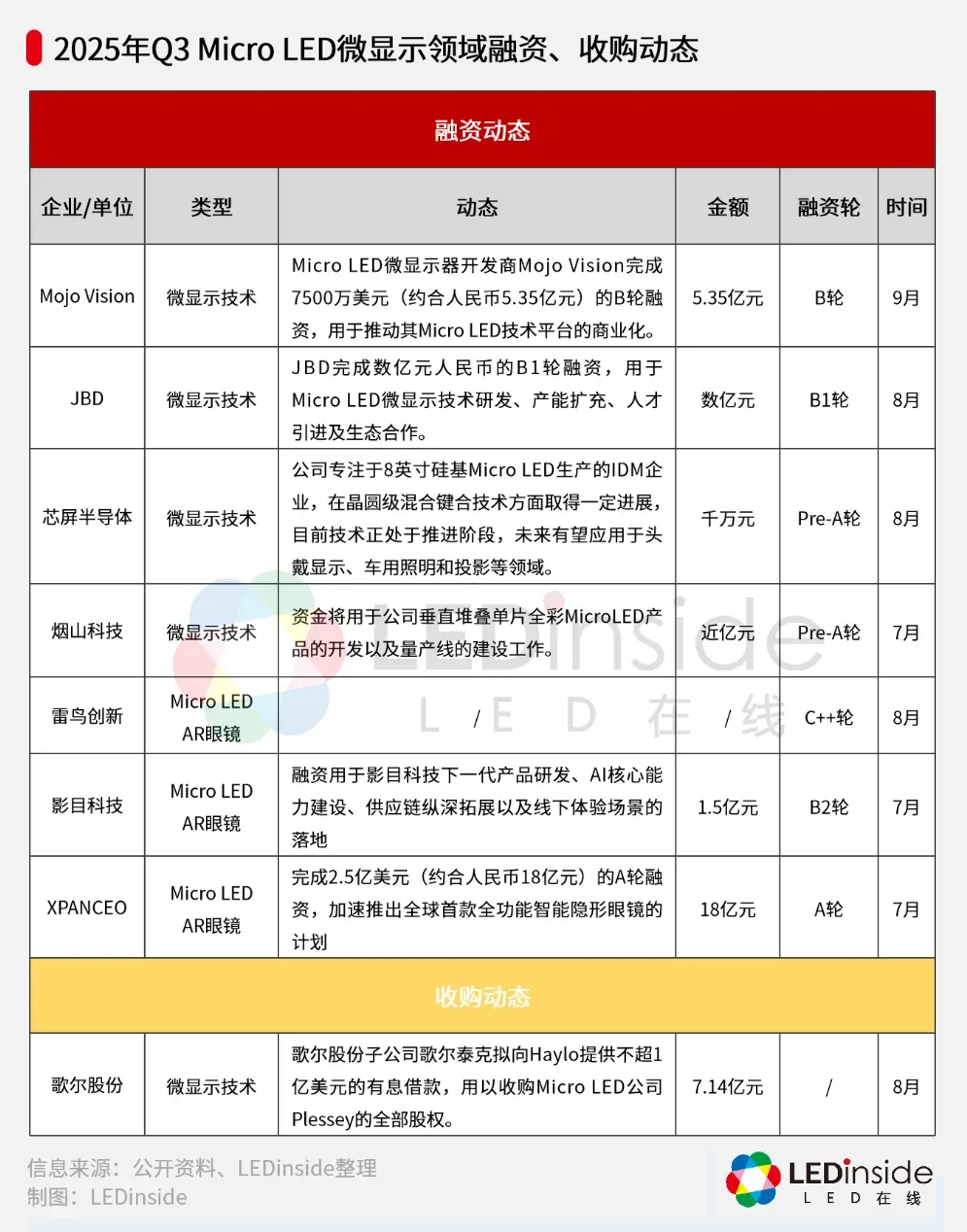 2025年第三季度,Micro LED微显示技术持续升温,成为显示产业关注的焦点。从产品技术突破到重大项目落地,再到资本市场的持续加码,Micro LED微显示领域呈现出多点开花、加速落地的态势。