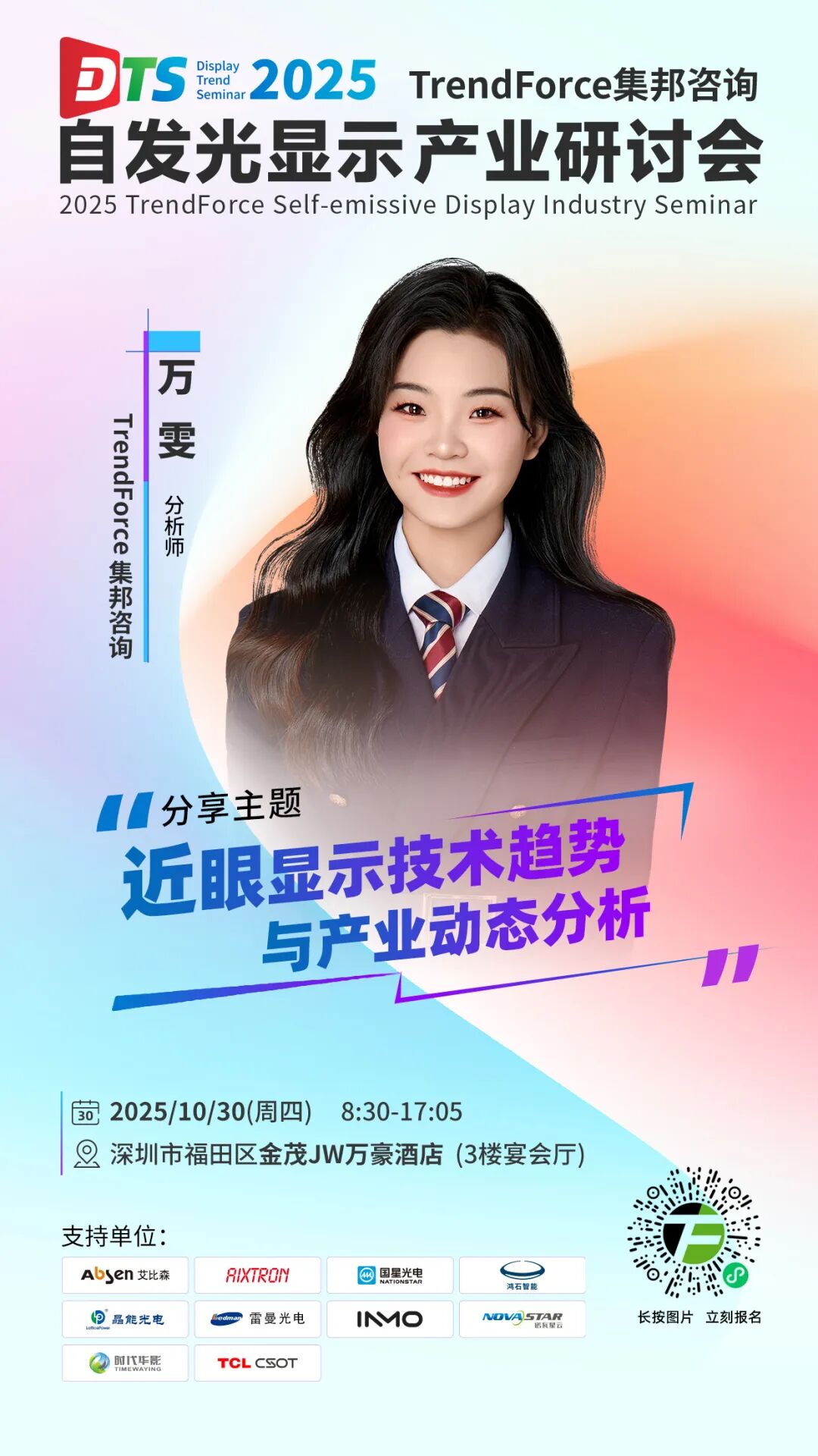 TrendForce集邦咨询万雯将发表《近眼显示技术趋势与产业动态分析》主题演讲