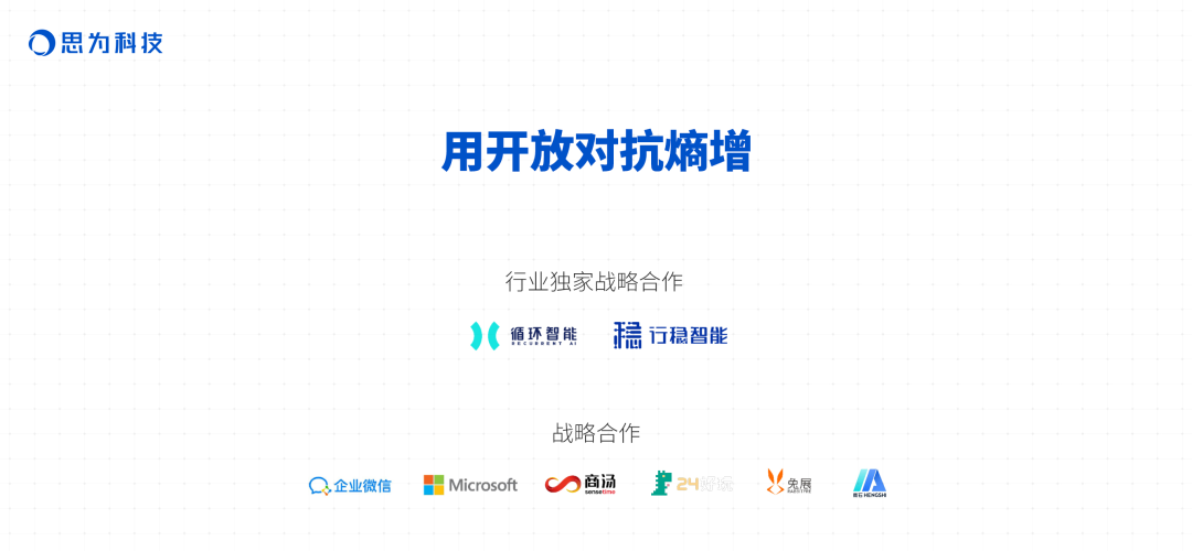产品就是思为的战略。产品背后凝聚的不止是思为数百名研发工程师的心血,还有思为的合作伙伴,包括两个行业独家战略合作方:循环智能,行稳智能,也包括企微、微软、商汤、衡石、创瓴等。这是思为幸运的地方,可以找到国内最优秀的创业公司,把他们最好的产品整合进来,为房地产行业所用。城市中台不再只是一个概念,而是把产品变革,组织变革和生态合作整合在一起,产生了lollapalooza效应。