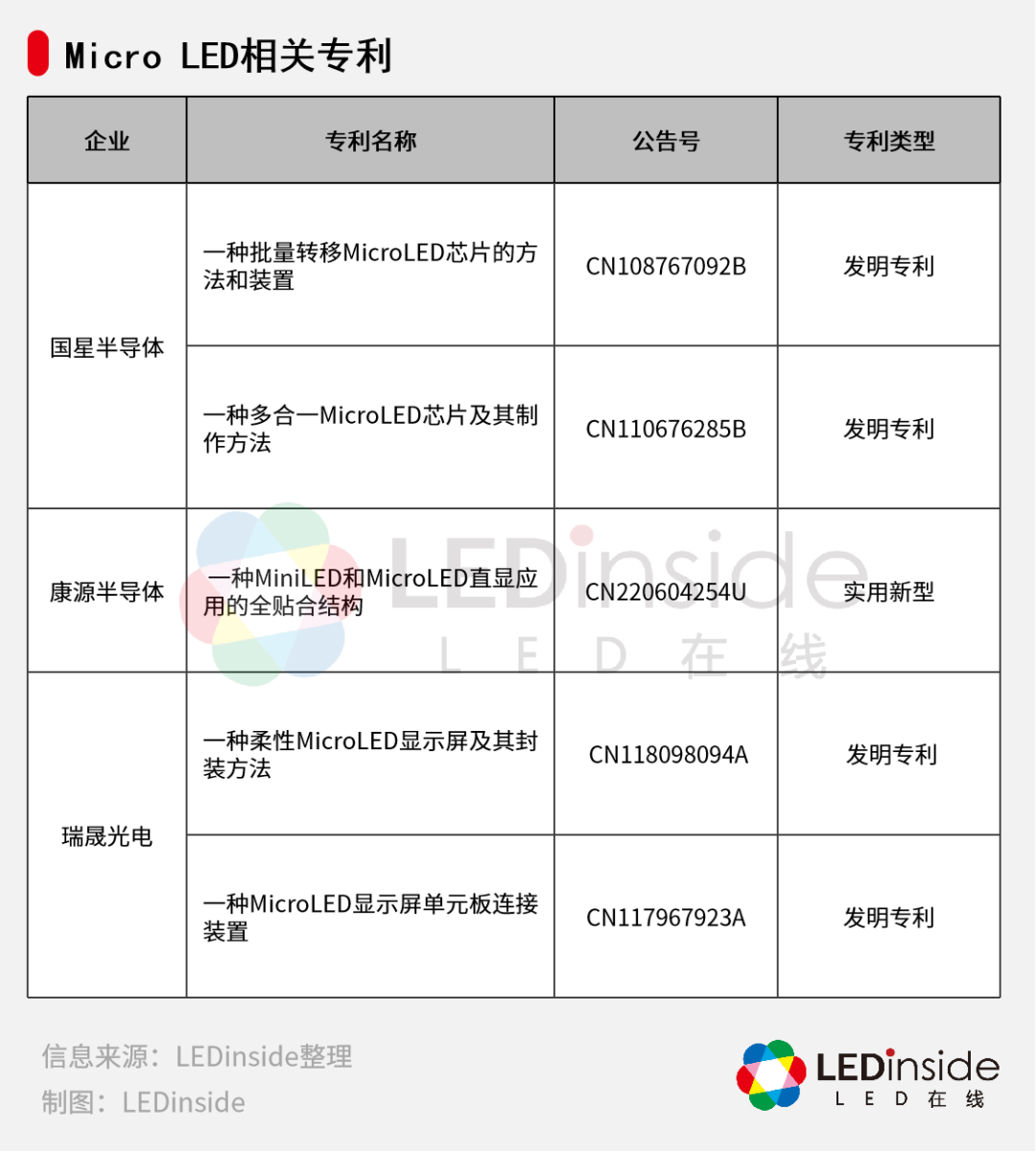 公布最新Micro LED专利,涉及芯片、封装、显示屏等制作环节。